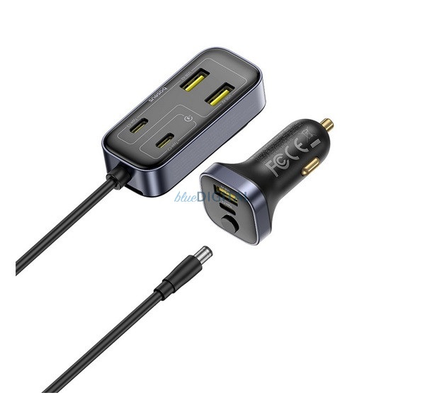 BASEUS BACKSEATPAL L1 încărcător auto 3 USB+3 prize Type-C (110W, încărcător rapid, GaN, 150cm) NEGRU