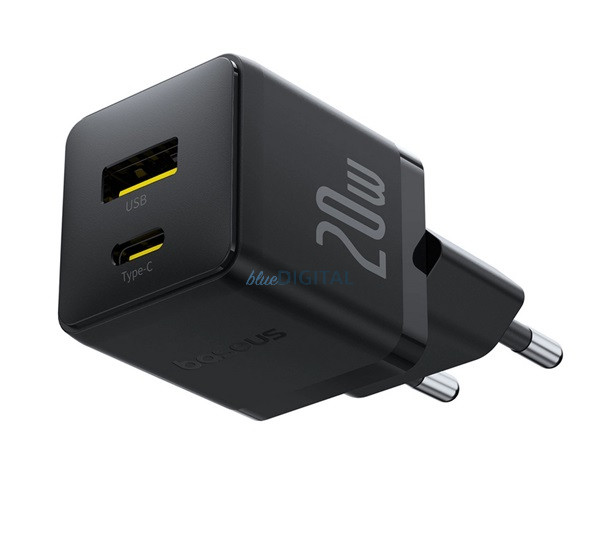 BASEUS PALM încărcător de rețea USB+Type-C (20W, încărcător rapid PD 3.0) NEGRU