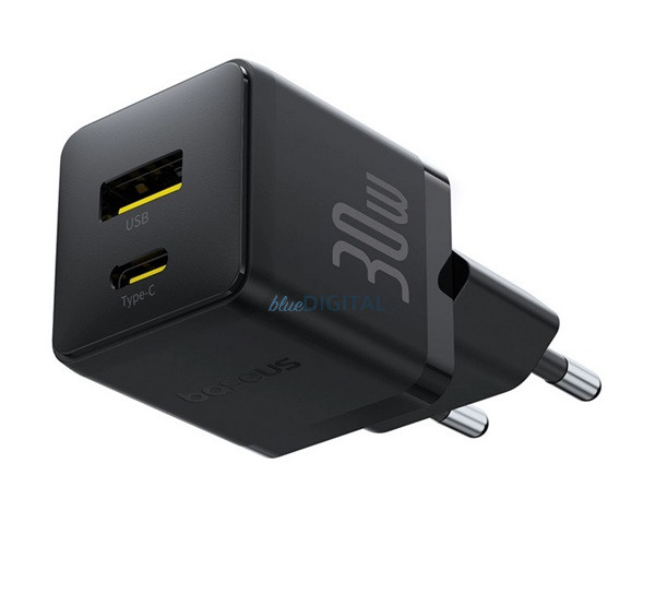 BASEUS PALM încărcător de rețea USB+Type-C (30W, încărcător rapid PD 3.0) NEGRU