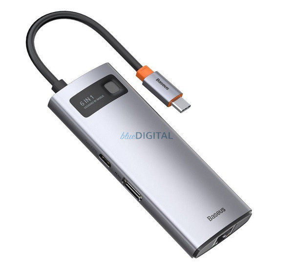 BASEUS Type-C HUB 6in1 (activ, hub, HDMI+3 mufe USB+Type-C+RJ45, încărcător rapid PD) GREY