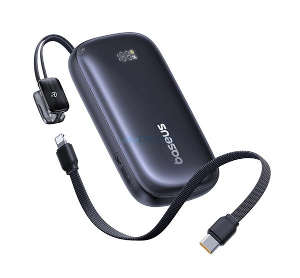 BASEUS Încărcător de urgență Type-C + fulger + priză USB (10000mAh, 22.5W, încărcător rapid PD, afișaj LED + cablu Type-C) NEGRU