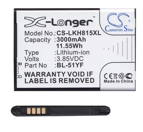 Baterie CAMERON SINO Li-Ion (3,85V/3000mAh, compatibil LG BL-51YF) NEGRU LG G4 (H815), LG G4 Stylus (H635)