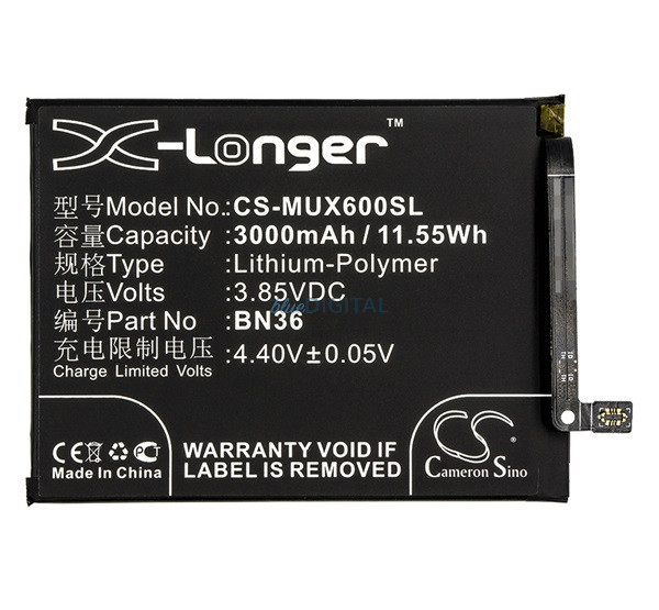 CAMERON SINO Li-Polymer baterie (3.85V/3000mAh, Xiaomi BN36 compatibil) BLACK Xiaomi Mi A2 (Mi 6X)