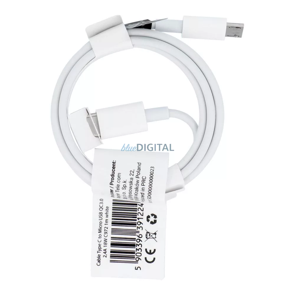 Cablu USB C și Micro USB QC3.0 2,4A 18W C972 1 m alb