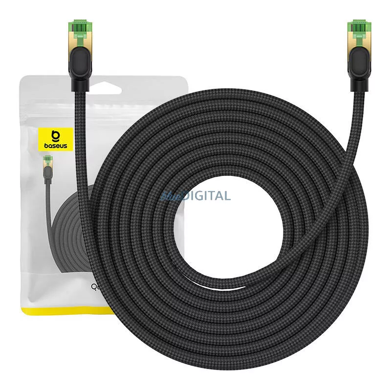 Cablu de rețea împletit cat.8 Baseus Ethernet RJ45, 40 Gbps, 10 m (negru)