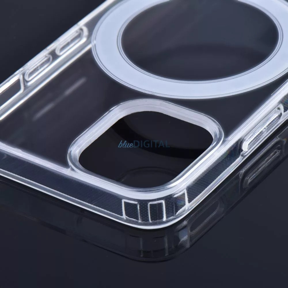 Clear Mag Cover pentru iPhone garantează materiale de înaltă calitate și confort total. Este compatibilă cu tehnologia inovatoare MagSafe , care vă permite să vă încărcați telefonul fără cablu. Inelul cu magneți încorporați permite încărcarea inductivă a bateriei fără a scoate carcasa. De asemenea, o puteți atașa la suporturile magnetice pentru mașină și nu vă faceți griji cu privire la rezistența suportului în timpul condusului.