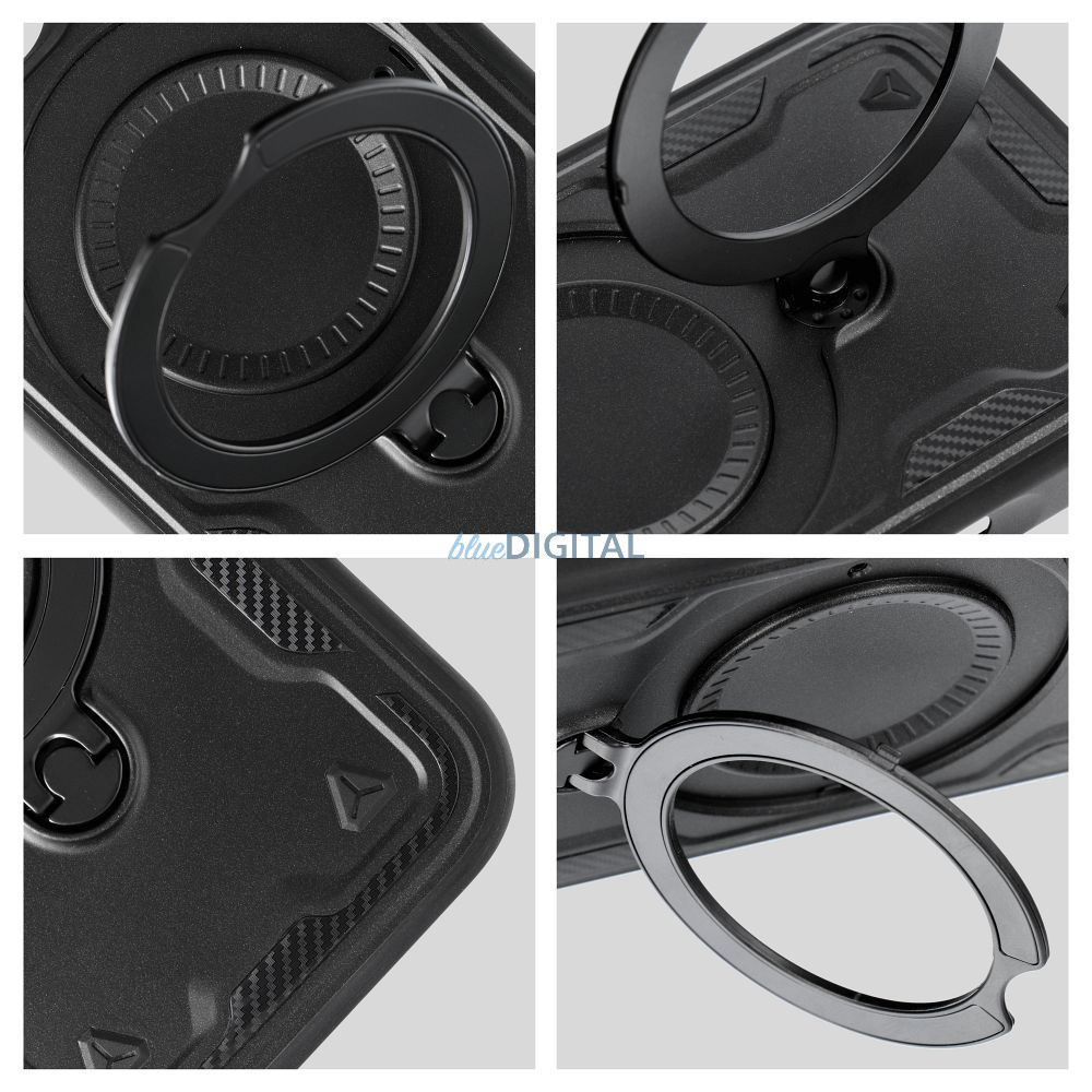 Un inel din interiorul carcasei acționează ca un suport stabil, astfel încât să puteți ține confortabil telefonul pe orizontală - excelent pentru vizionarea de filme sau pentru a face fotografii. Atunci când este pliat, inelul se potrivește perfect în carcasă, fără a interfera cu încărcarea sau utilizarea dispozitivului.