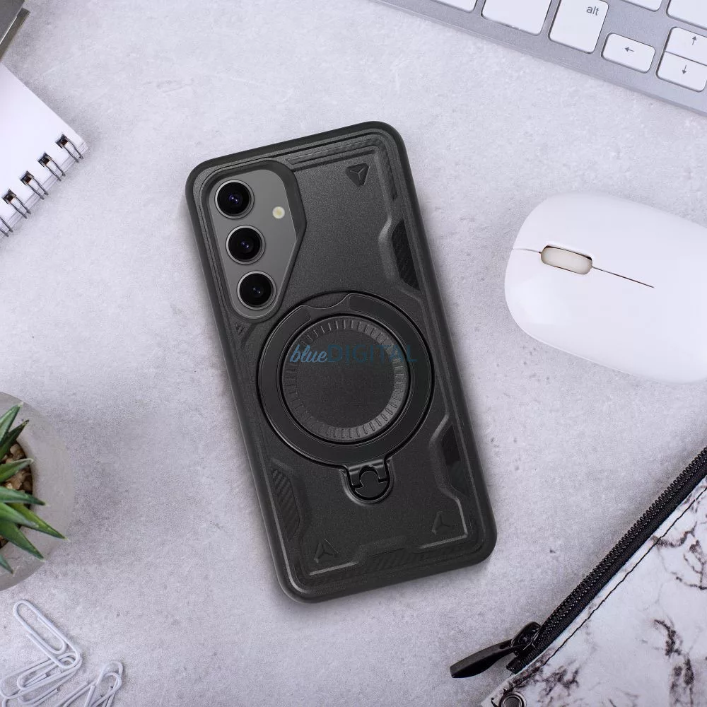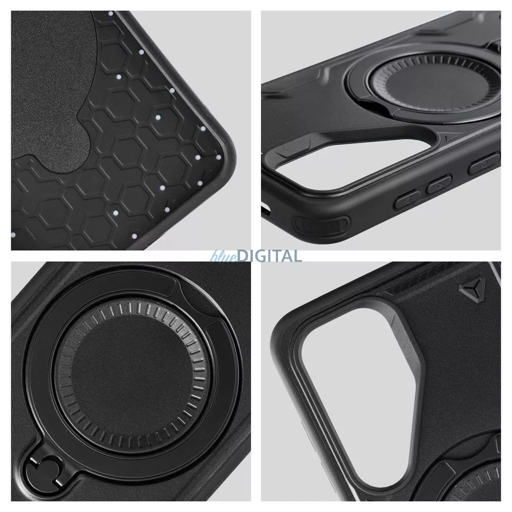 Un inel din interiorul carcasei acționează ca un suport stabil, astfel încât să puteți ține confortabil telefonul pe orizontală - excelent pentru vizionarea de filme sau pentru a face fotografii. Atunci când este pliat, inelul se potrivește perfect în carcasă, fără a interfera cu încărcarea sau utilizarea dispozitivului.