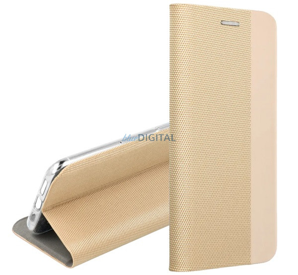 HUSĂ! - Carcasă Standing, efect piele (FLIP, deschidere laterală, desktop, model textil) GOLD Samsung Galaxy A17 5G (SM-A176)