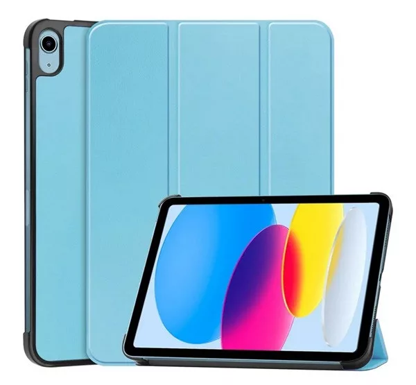Carcasă în picioare, efect piele (FLIP activ, deschidere laterală, TRIFOLD, suport de birou) ALBASTRU DESCHIS Apple IPAD 10.9 (2022)