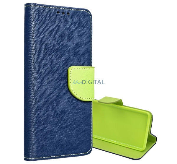 HUSĂ! - Carcasă permanentă cu efect de piele (FLIP, deschidere laterală, suport desktop, buzunar pentru carduri, efect textil) BLUE/GREEN Xiaomi Redmi Note 14 4G