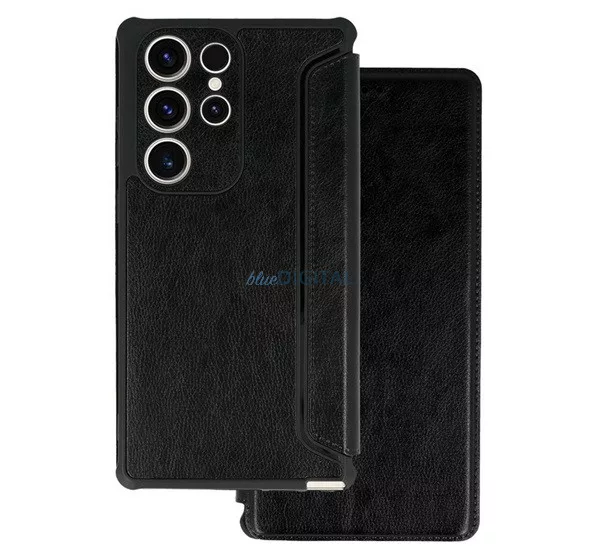 HUSĂ! - Carcasă permanentă, efect piele (FLIP, deschidere laterală, rezistență la șocuri, colț hover, protecție cameră foto) BLACK Samsung Galaxy S24 FE (SM-S721)