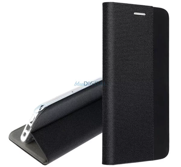 HUSĂ! - Case Standing, efect de piele (FLIP, deschidere laterală, desktop, model textil) BLACK Xiaomi Redmi A5 4G