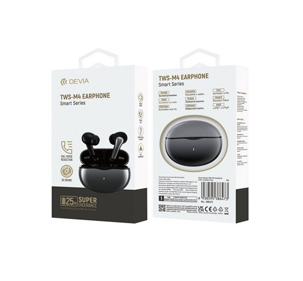 Devia M4 este o căști in-ear Bluetooth 5.2 TWS cu cutie de încărcare. Căștile acceptă tehnologia TWS (True Wireless Stereo) - ambele căști se conectează între ele pentru a crea un set stereo wireless.