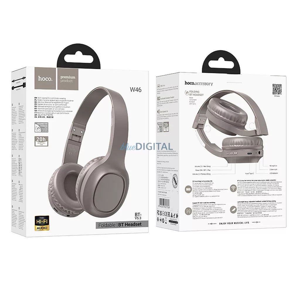 Hoco W46 este o cască over-ear wireless elegantă și confortabilă, perfectă pentru utilizarea zilnică. Echipate cu tehnologia Bluetooth 5.3, acestea oferă o conexiune stabilă și un consum redus de energie. Bateria de 200 mAh asigură până la 20 de ore de redare a muzicii după aproximativ 2 ore de încărcare completă. Căștile suportă atât wireless prin Bluetooth, cât și cu fir prin portul AUX, oferindu-vă flexibilitate. Dimensiunile sale compacte și greutatea redusă (109 g) asigură confortul chiar și în timpul purtării prelungite. Comenzile vocale sunt disponibile în engleză și chineză, facilitând utilizarea.