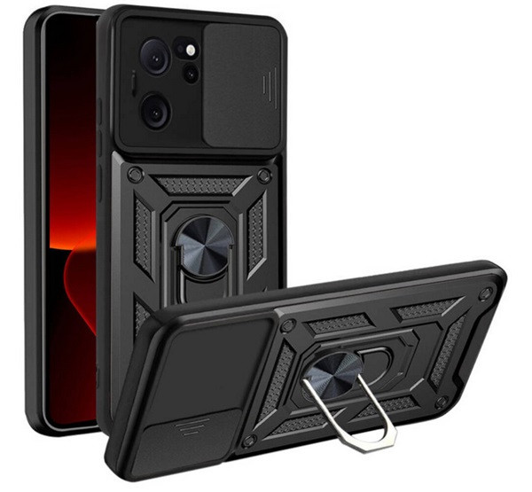 HUSĂ! - Defender protecțiede plastic pentru telefon (rezistent la impact mediu, interior din silicon, inel pentru titularul telefonului, protecție pentru cameră) negru Xiaomi 13T Pro, 13T