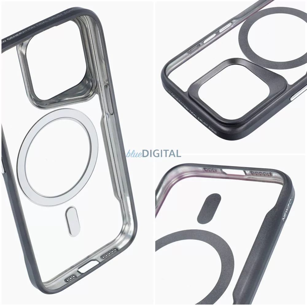 Suport MagSafe® Compatibilitatea MagSafe® este o caracteristică cheie a carcasei Ergofit Newzone, permițând utilizarea ușoară a suporturilor magnetice și a încărcătoarelor wireless fără a scoate carcasa.