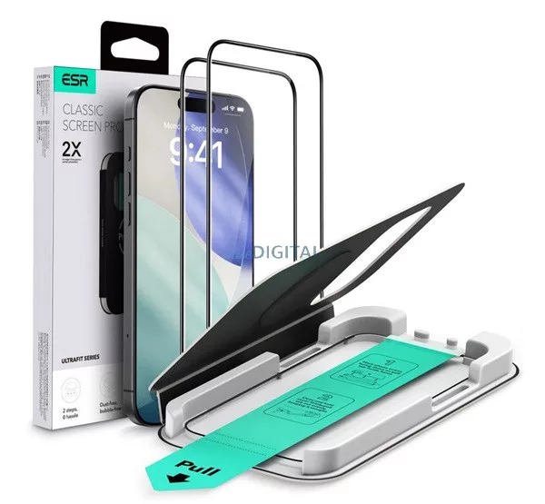 ESR ULTRAFIT Ecran de protecție din sticlă 2pcs (2.5D, 9H + Frame) pentru Apple iPhone 17 Pro