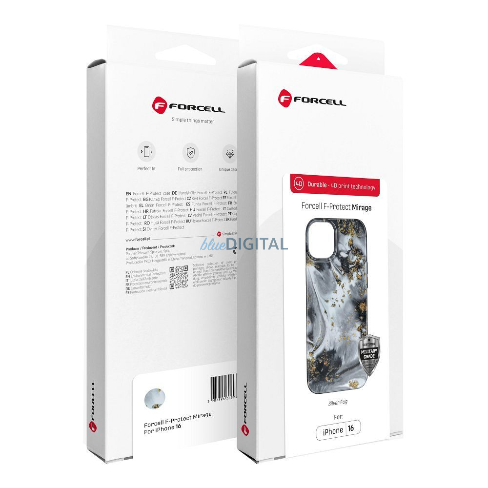 HUSĂ! - FORCELL F-PROTECT Mirage, carcasă militară testată la cădere compatibilă cu MagSafe pentru IPHONE 16 PLUS Silver Fog