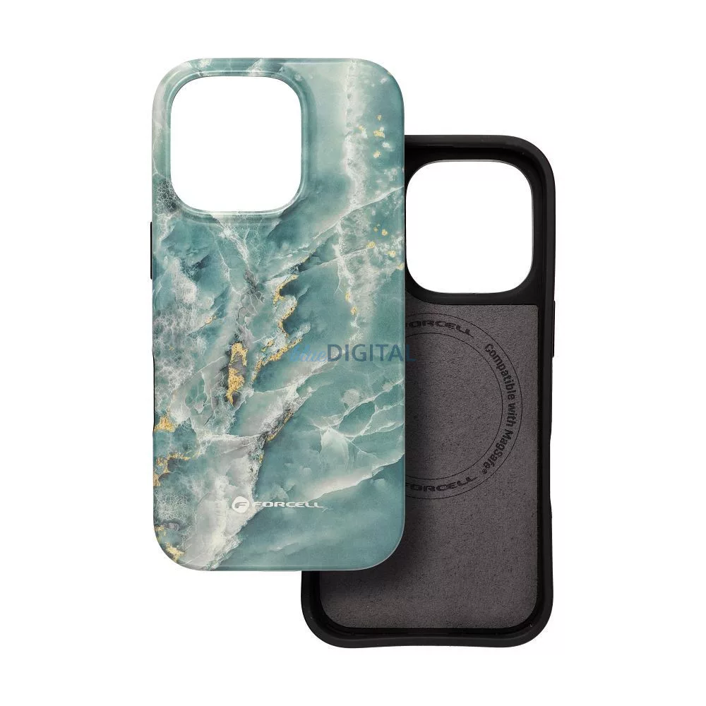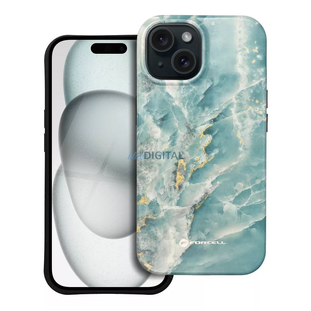 HUSĂ! - FORCELL F-PROTECT Mirage, carcasă militară testată la cădere compatibilă cu MagSafe pentru IPHONE 15 în verde marmură