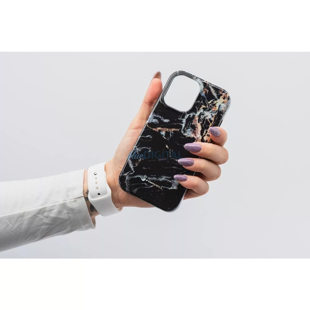 HUSĂ! - FORCELL F-PROTECT Mirage, carcasă militară testată la cădere compatibilă cu MagSafe pentru IPHONE 15 PRO black marble