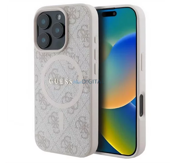 HUSĂ! - GUESS 4G RING CLASSIC LOGO silicon protector de telefon (rezistent la șocuri, spate textil, MagSafe) BRONZE Apple iPhone 16 Pro