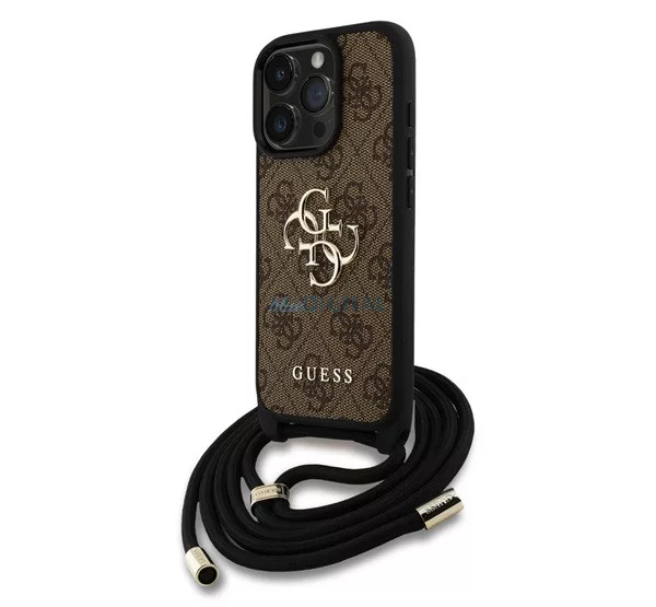 HUSĂ! - GUESS PU 4G METAL LOGO CROSSBODY STRAP plastic protector de telefon (rezistent la șocuri, efect de piele spate + curea de umăr) BARNA Apple iPhone 15 Pro