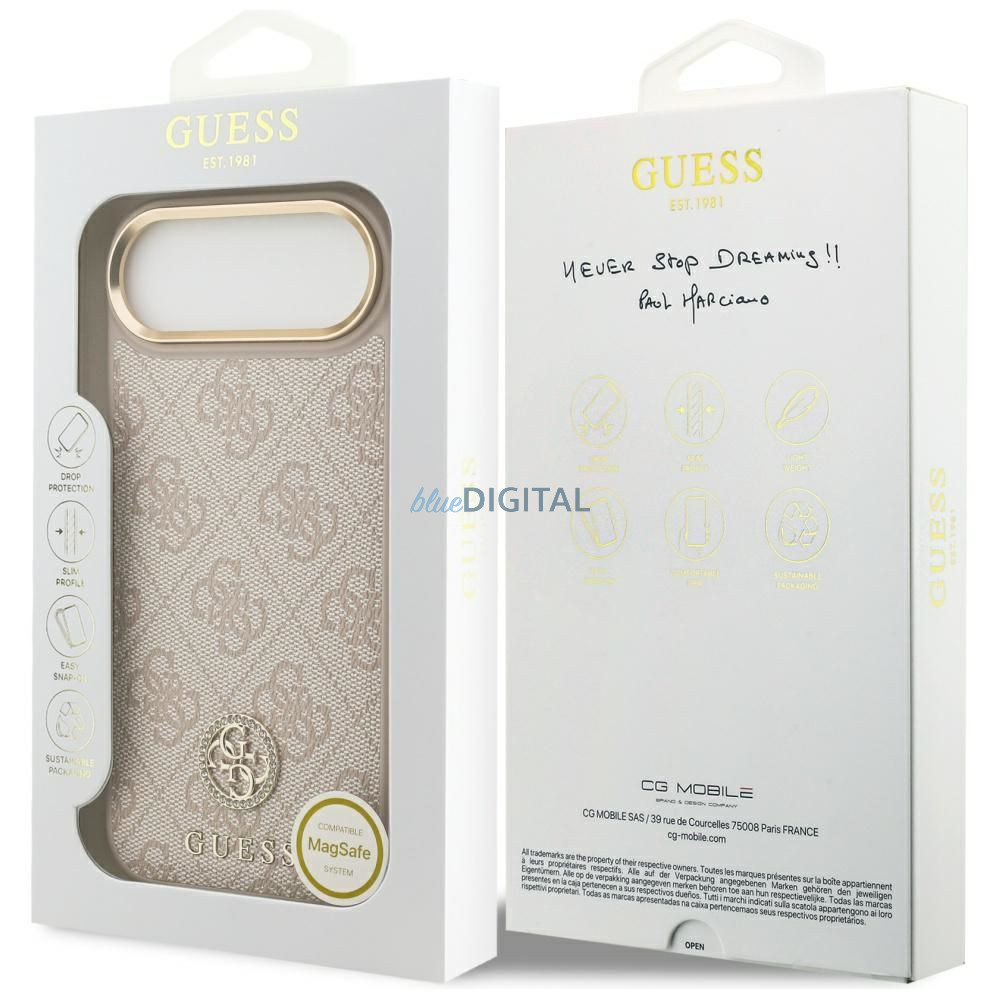 HUSĂ! - GUESS caz IPHONE 17 Air compatibil MagSafe GUHMP17MP4GRMDEP (PU W / 4G logo-ul Rhinestone) roz