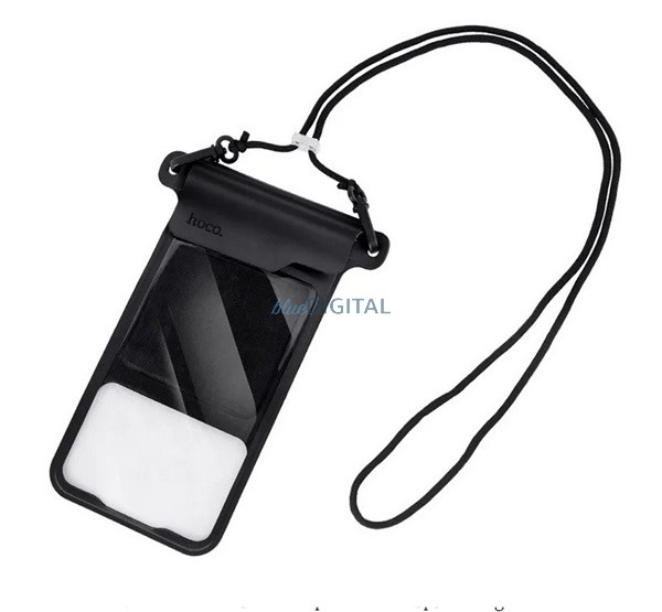 HUSĂ! - HOCO BAG31 geantă impermeabilă/rezistentă la apă, AQUA (universal, IPX8, cârlig pentru gât, velcro, dimensiune 7.2") NEGRU