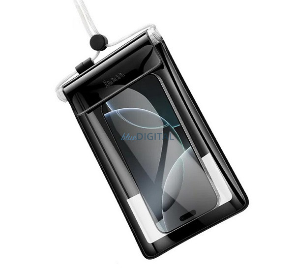 HUSĂ! - HOCO BAG32 geantă impermeabilă/rezistentă la apă, AQUA (universal, IPX8, cârlig pentru gât, fermoar, dimensiune 7.2") NEGRU