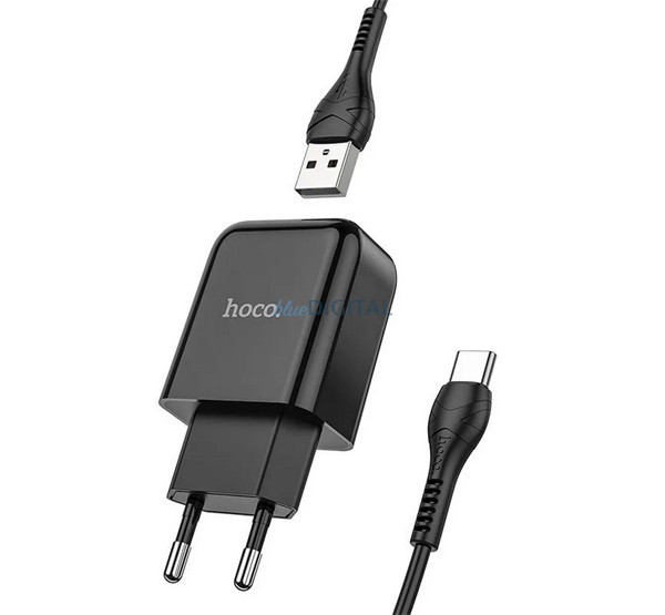 HOCO N2 VIGOUR încărcător de rețea priză USB (10W, încărcător rapid + cablu Type-C) NEGRU