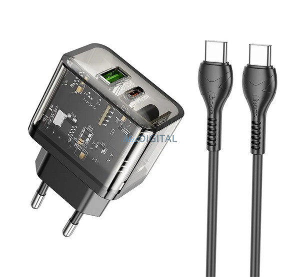 HOCO N34 încărcător de rețea USB + priză Type-C (20W, încărcător rapid PD 3.0 + cablu Type-C) TRANSFER