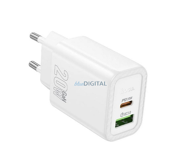 HOCO N61 încărcător de rețea USB+Type-C (20W, încărcător rapid PD 3.0) ALB