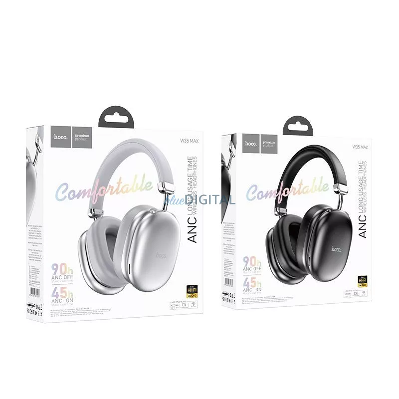 Căști Bluetooth portabile - HOCO W35 Max cu ANC. Acestea oferă un sunet clar, de înaltă calitate, cu bas profund. Designul pliabil face căștile ușor de transportat și de depozitat într-o geantă sau într-un rucsac.