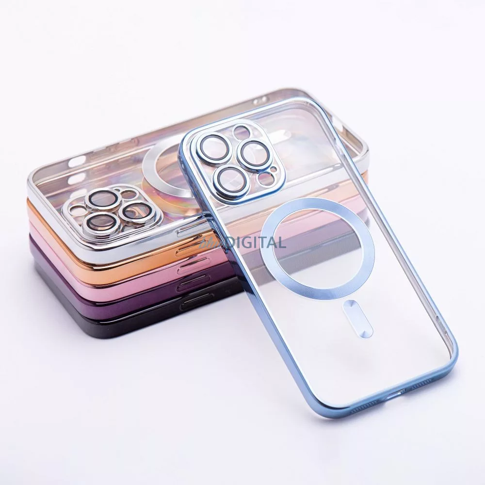 Carcasa vă protejează telefonul și suportul pentru cameră, asigurând o blocare completă. Designul transparent cu accente de culoare moale în jurul inelului magnetic, al insulelor camerei și al părților laterale permite o estetică a dispozitivului Apple, făcând carcasa la fel de elegantă ca întotdeauna.