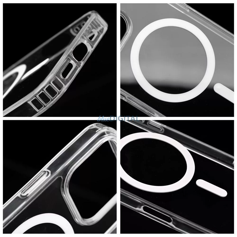 Carcasa funcționează cu accesoriile MagSafe pentru a asigura confortul încărcătoarelor wireless și suporturilor magnetice. Inelul MagSafe, ascuns sub suprafață și acoperit cu un adeziv lichid colorat, este rezistent la zgârieturi pentru a asigura funcționarea fiabilă a funcțiilor magnetice.