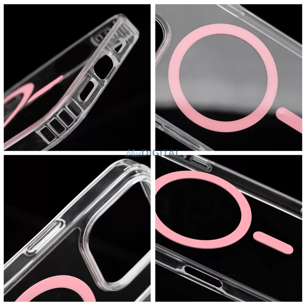 Carcasa funcționează cu accesoriile MagSafe pentru a asigura confortul încărcătoarelor wireless și suporturilor magnetice. Inelul MagSafe, ascuns sub suprafață și acoperit cu un adeziv lichid colorat, este rezistent la zgârieturi pentru a asigura funcționarea fiabilă a funcțiilor magnetice.