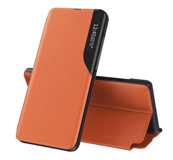 HUSĂ! - Husă în picioare, efect de piele ecologică (FLIP activ, deschidere laterală, funcție de suport pentru birou, afișare număr de telefon, fereastră de vizualizare) PORTOCALIU Samsung Galaxy A05s (SM-A057F)
