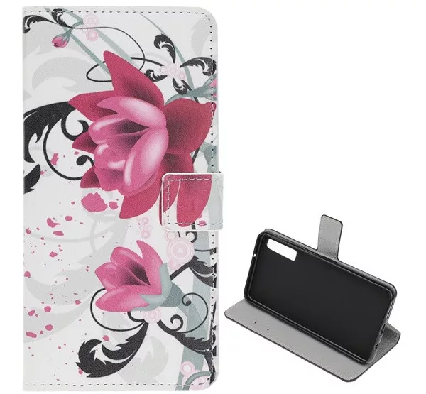 HUSĂ! - Husă în picioare, efect piele (FLIP, deschidere laterală, funcție suport pentru masă, model flori de lotus) ALB Samsung Galaxy A50 (SM-A505F), Samsung Galaxy A30s (SM-A307F), Samsung Galaxy A50s (SM-A507F)