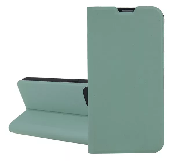 HUSĂ! - Husă în picioare, efect piele (FLIP, interior din silicon, deschidere laterală, suport de masă, buzunar pentru card) VERDE DESCHIS Apple iPhone 16 Pro