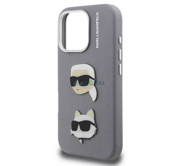 HUSĂ! - KARL LAGERFELD GRAINED PU K&CH HEADS silicon protector de telefon (rezistent la șocuri, efect de piele spate, 3D) LIGHT GREY Apple iPhone 16 Pro