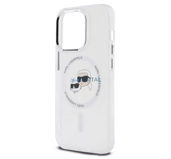 HUSĂ! - KARL LAGERFELD IML K&CH HEADS METAL FRAME MAGSAFE silicon protector de telefon (rezistent la șocuri, protector de cameră, MagSafe) pentru Apple iPhone 15 Pro
