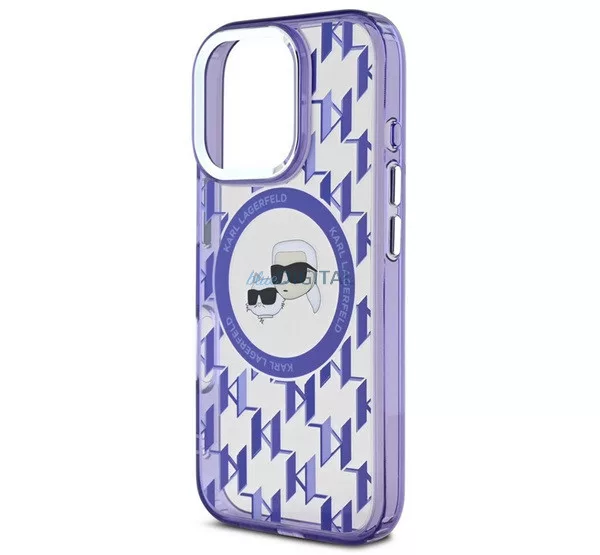 HUSĂ! - KARL LAGERFELD IML MONOGRAM K&CH HEADS MAGSAFE silicon protector de telefon (rezistent la șocuri, protector de cameră, MagSafe) LILA Apple iPhone 16 Pro