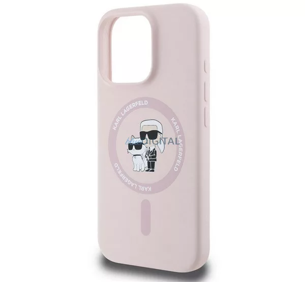 HUSĂ! - KARL LAGERFELD LIQUID SILICONE KARL AND CHOUPETTE MAGSAFE silicon protector de telefon (rezistent la șocuri, MagSafe) ROSE COLOUR Apple iPhone 16 Pro