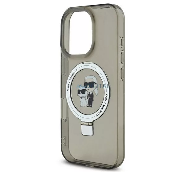 HUSĂ! - KARL LAGERFELD RINGSTAND KARL ȘI CHOUPETTE MAGSAFE silicon telefon protector (rezistent la șocuri, MagSafe, anti-reflexie) BLACK Apple iPhone 16 Pro