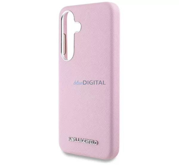 HUSĂ! - KARL LAGERFELD SAFFIANO FULL WRAPPED ELONGATED METAL LOGO silicon protector de telefon (rezistent la șocuri, MagSafe) ROSE CULOUR Samsung Galaxy S25 (SM-S931)