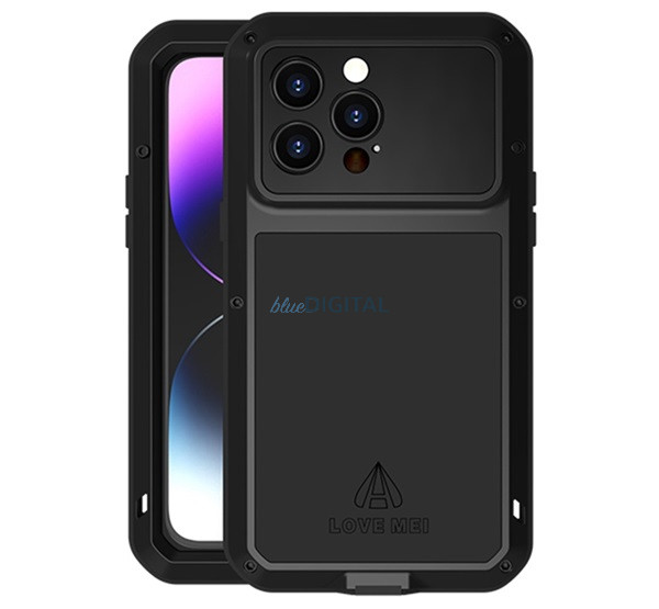 HUSĂ! - LOVE MEI Protector puternic pentru telefon protector (cadru metalic, rezistent la socuri extrem, rezistent la cadere, rezistent la praf + Gorilla Glass) NEGRU Apple iPhone 14 Pro Max