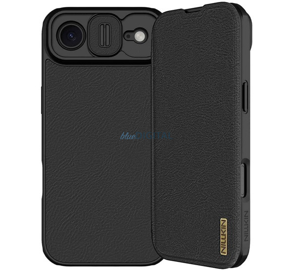 HUSĂ! - NILLKIN QIN PRO Carcasă cu efect de piele în picioare (FLIP, deschidere laterală, buzunar pentru carduri, protecție pentru cameră) NEGRU Apple iPhone Air