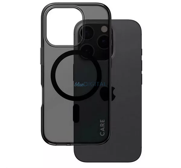 HUSĂ! - PANZERGLASS CARE FLAGSHIP URBAN COMBAT SMOKEY CASE silicon protector de telefon (rezistent la șocuri, protecția camerei, MagSafe) BLACK Apple iPhone 16 Pro