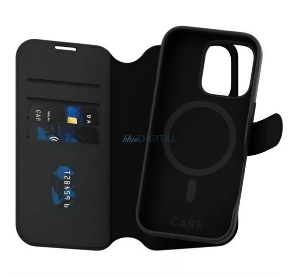 HUSĂ! - PANZERGLASS CARE TANGO TWO-IN-ONE Standing Leather Effect Case (FLIP, deschidere laterală, MagSafe, capac amovibil pentru telefon) BLACK Apple iPhone 16 Pro